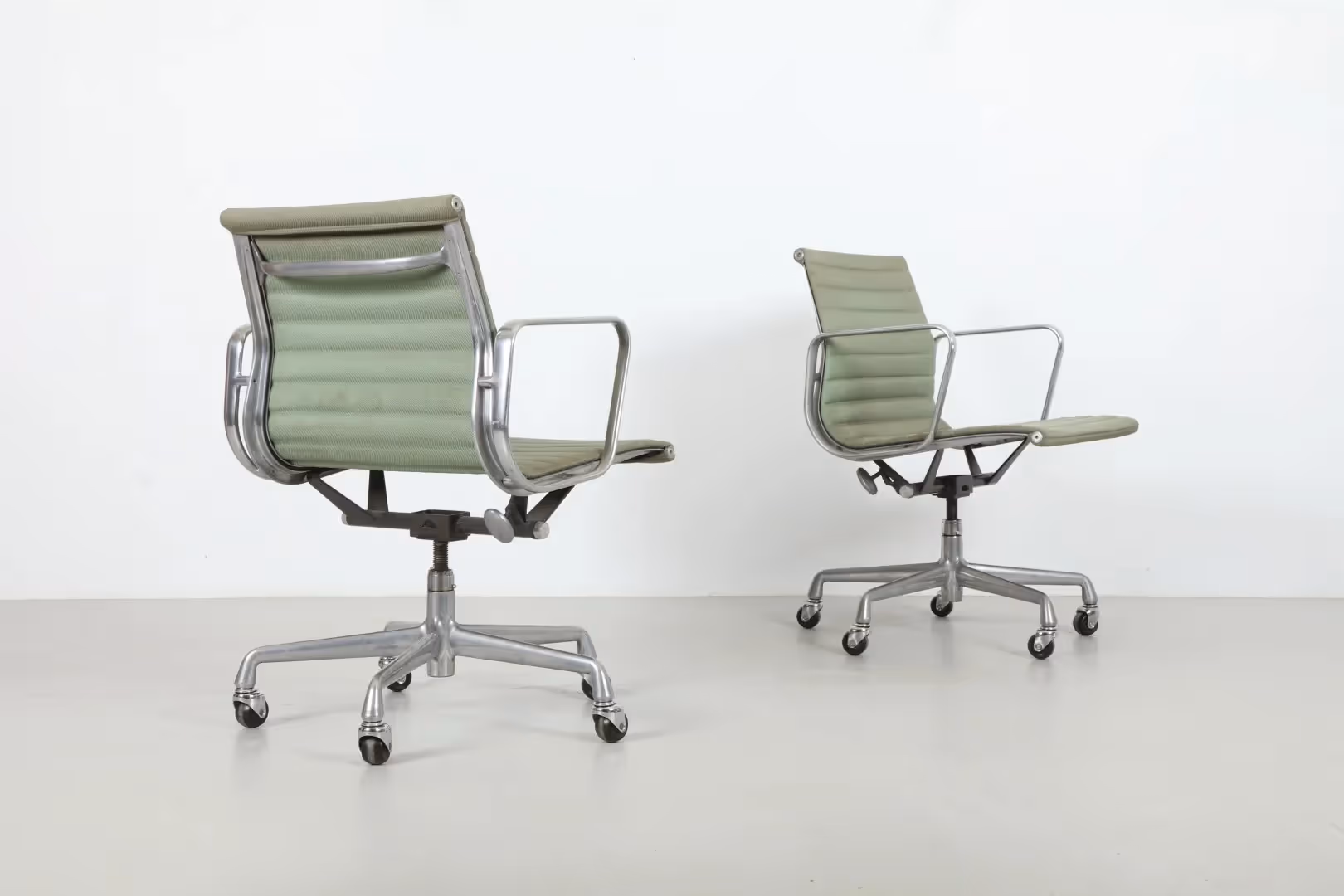The Aluminium Group Chair, by husband-and-wife duo Charles and Ray Eames, is a masterpiece of mid-century modern design. First launched in 1958, the chair embodies sophisticated elegance with its sleek aluminium frame and ergonomic form.
