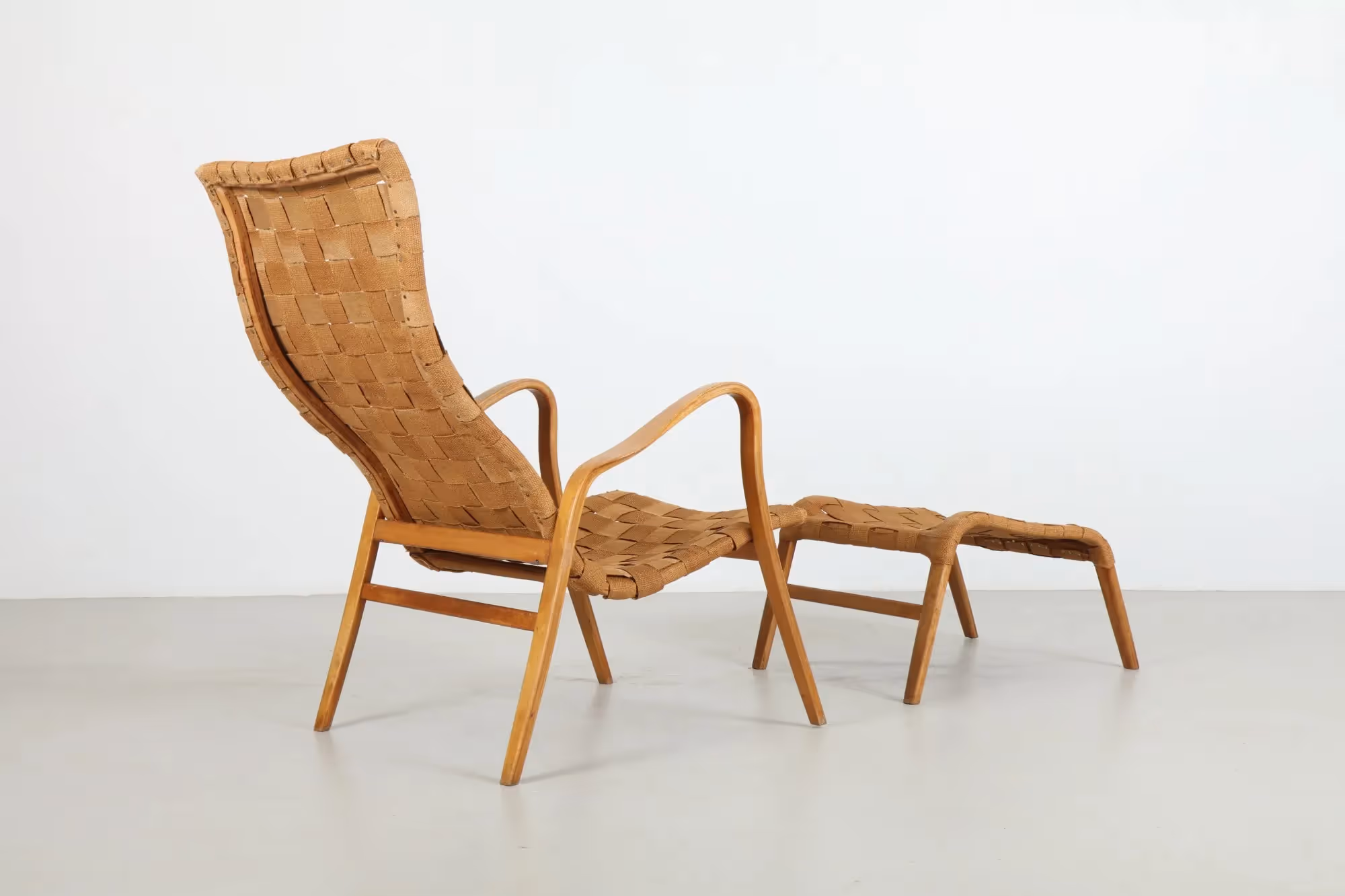 A sculptural celebration of organic Swedish modernism, Gustaf Axel Berg’s 'Torparen 2' armchair pairs sinuous curves with an inviting, ergonomic form, perfectly complemented by a generous matching ottoman. The flowing, biomorphic silhouette delivers lightness of form and timeless elegance, making a refined statement in any interior.
