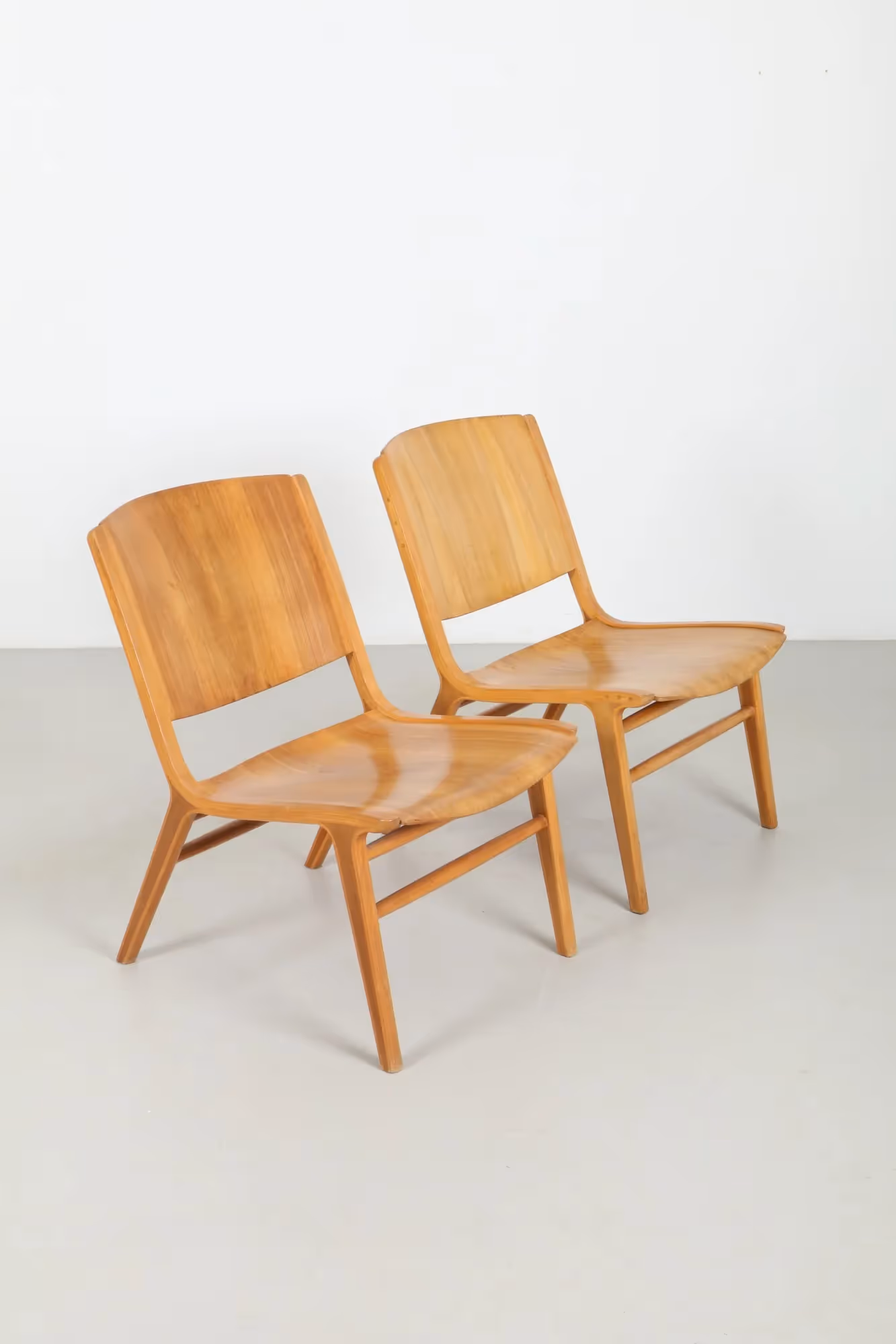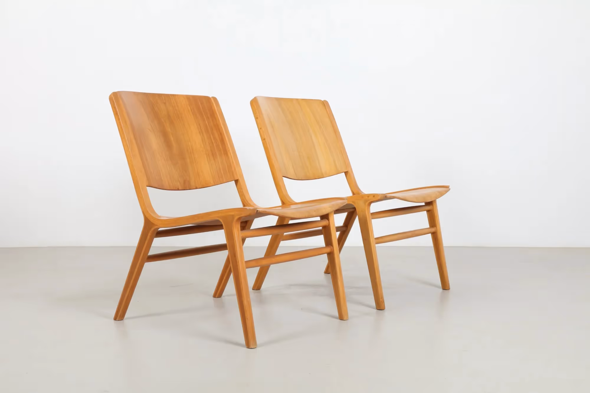 During their careers Hvidt and Mølgaard-Nielsen designed over 250 pieces of furniture for Danish furniture companies such as Fritz Hansen, France & Son and Søborg Møbelfabrik. Today the duo's most iconic design is known as the 'AX' chair. It was exhibited in 1951 as part of the 'Good Design' show at MoMA. The chair was loved for it's refined form, robust construction and ability to easily flat pack.