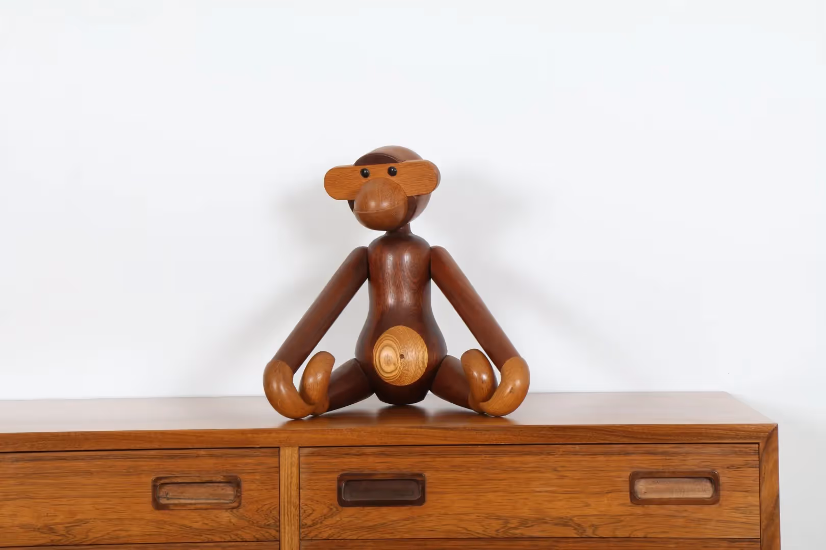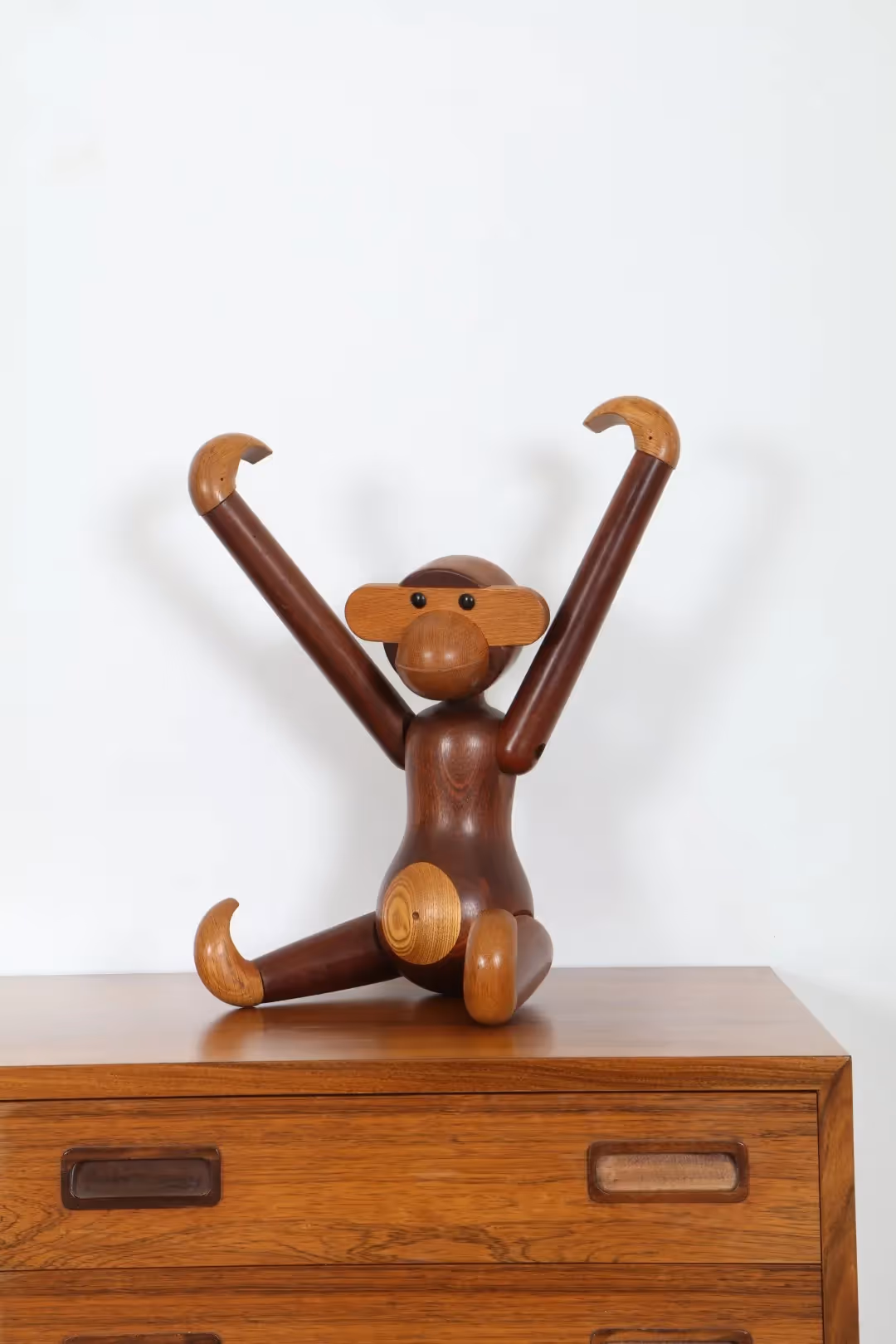 In the 1930s, Bojesen sold his silversmith workshop and began experimenting with wood. He quickly fell in love with the new medium, which led to the creation of some of the most iconic wooden toys of the mid-century era. The most celebrated is Bojesen's cheeky monkey from 1951, a design initially created as a coat rack for a children’s room.