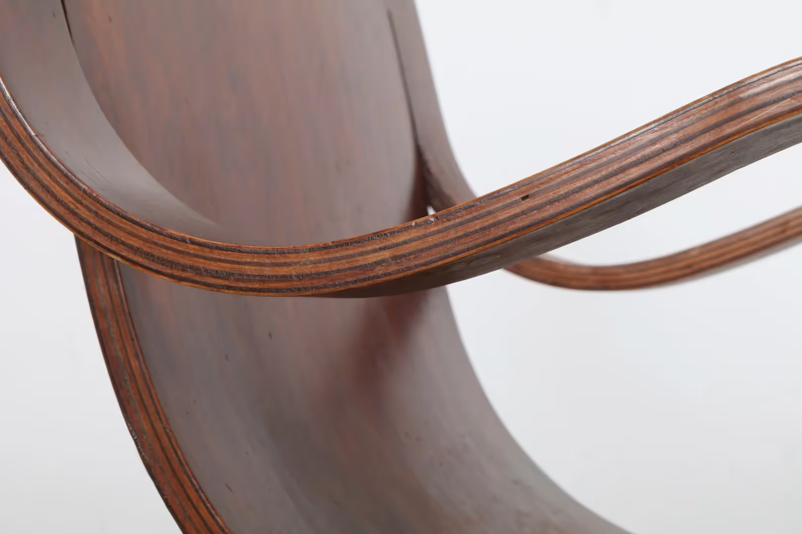 The elegant, cantilevered design pushed the limits of plywood construction and the tastes of a conservative New Zealand public. Unfortunately, the Curvesse was not a commercial success and only around 500 were ever produced. Today the few remaining chairs are closely held and highly coveted by serious collectors, or in the permanent collection of major museums. This is a very rare opportunity to obtain a celebrated modernist Kiwi icon!