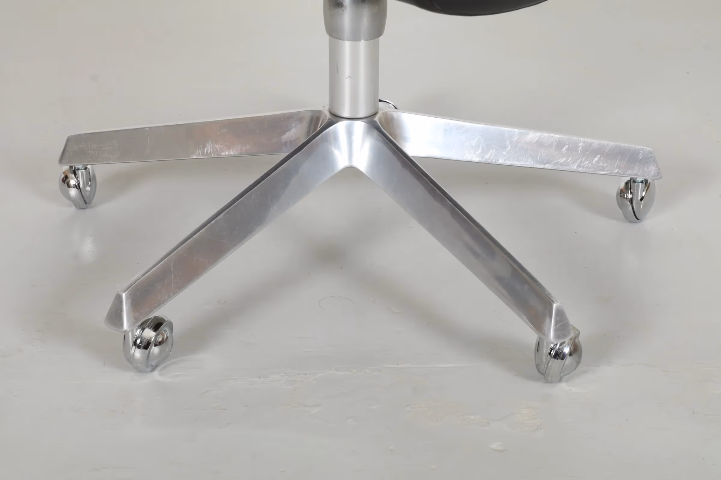 Characterised by its smooth lines and organic shapes, the Model 210 features an angular seat form which supports the spine while allowing for a relaxed posture. The chair's height and tilt can be adjusted to suit the user.