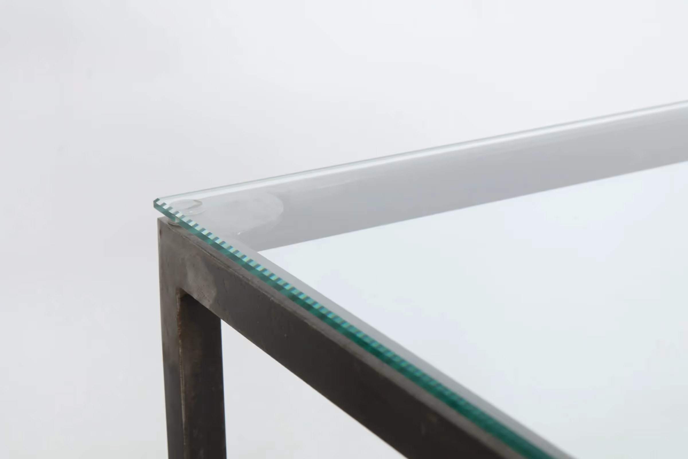 Zambesi co-founder Neville Findlay collaborated with Gary Hunt to produce a design that would align with the Zambesi aesthetic of the 1990s. A square, linear steel frame supports a glass shelf as a space to elevate a favourite object or group of books.