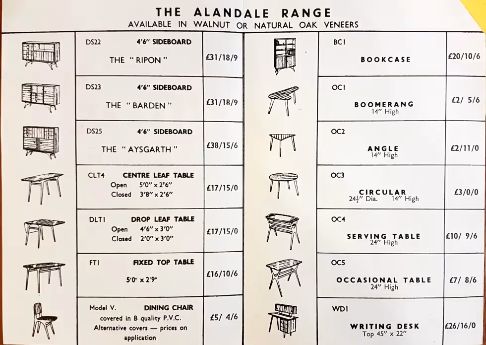 Walker incorporated current international design trends into Dalescraft's offerings. In the 1950s, designs reflected Italian influences, while in the 1960s, they drew inspiration from Danish designers, notably Grete Jalk.