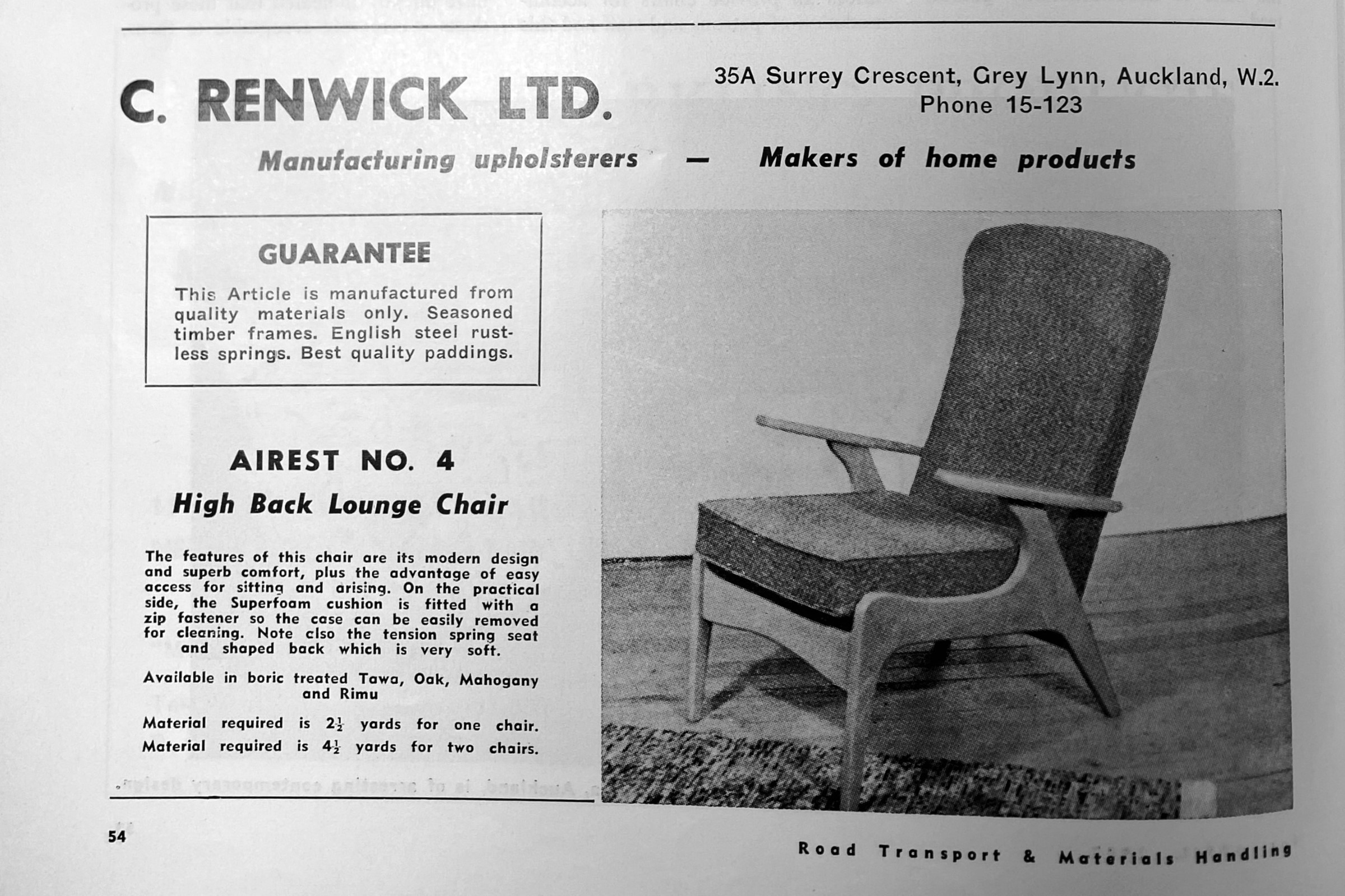 During the 1950s, Ces Renwick of Airest looked internationally for inspiration to create furniture that would push boundaries and inspire a local Kiwi audience. For this design, Renwick was inspired by the work of groundbreaking Australian designer Fred Lowen and his recently released SC55 armchair.