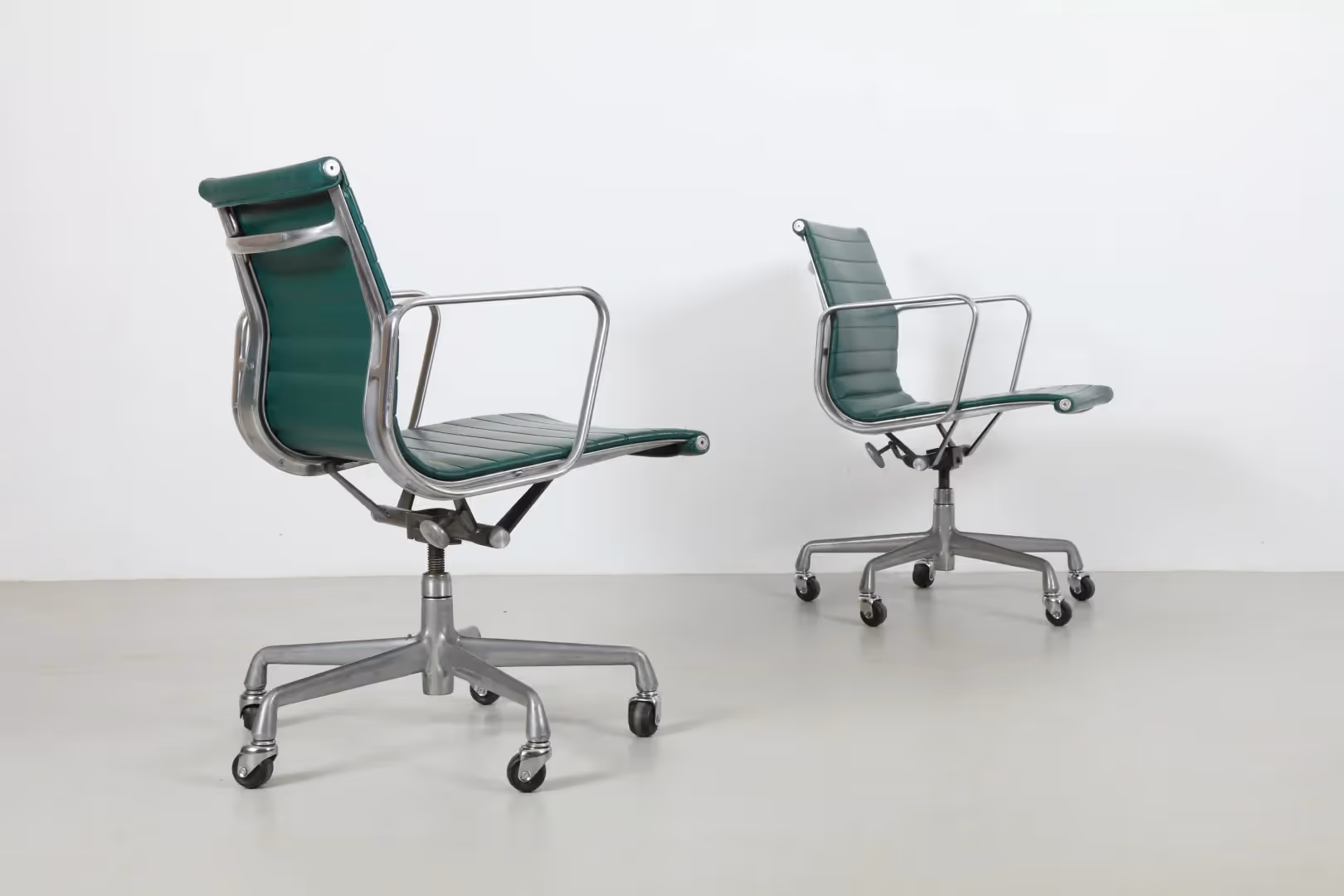 Classic Ray & Charles Eames 'EA335' Aluminium Group Chairs by Herman Miller (Green Seats)