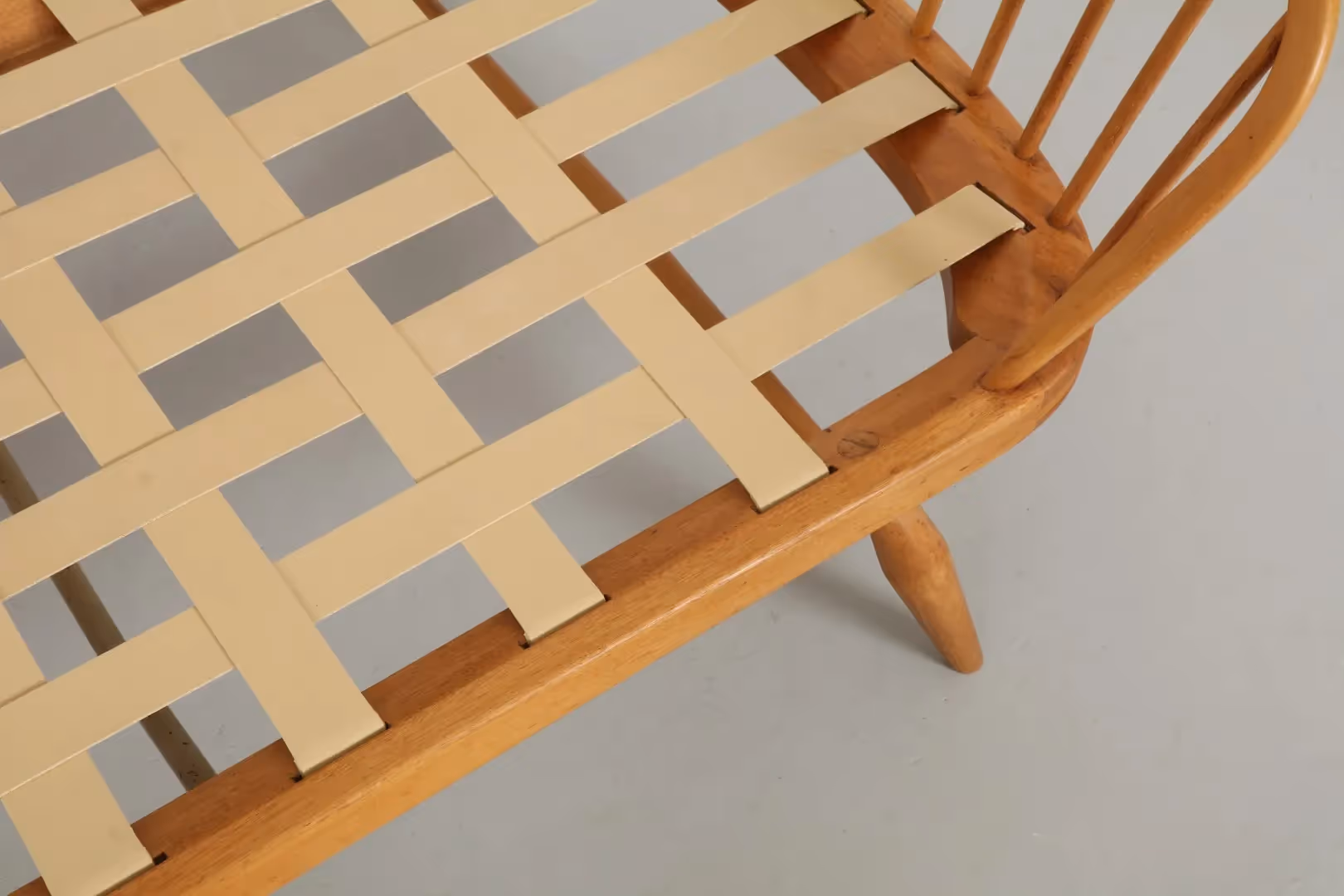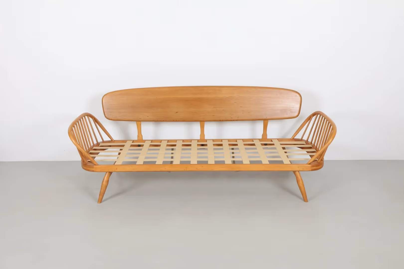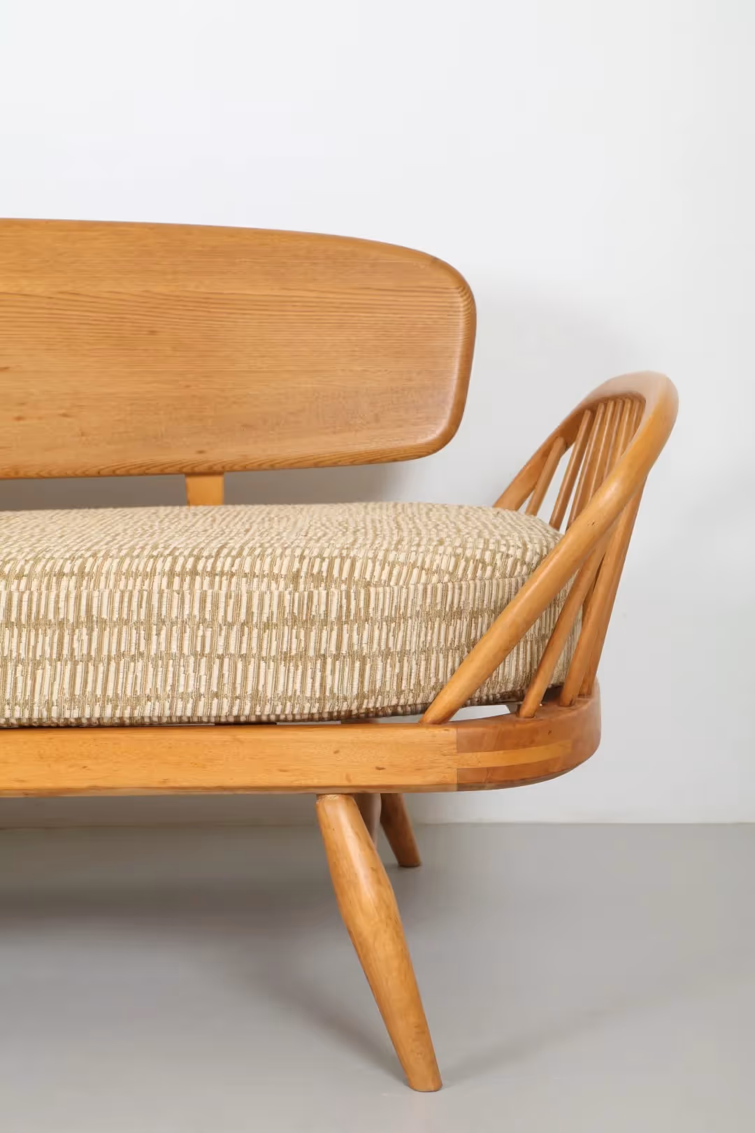 A rare find, the Lucian Ercolani 'Model 335' Studio Sofa by Ercol showcases the timeless elegance of post-war British design. Crafted from solid elm and beech, this iconic piece features Ercol’s signature sculpted frame and refined lines.