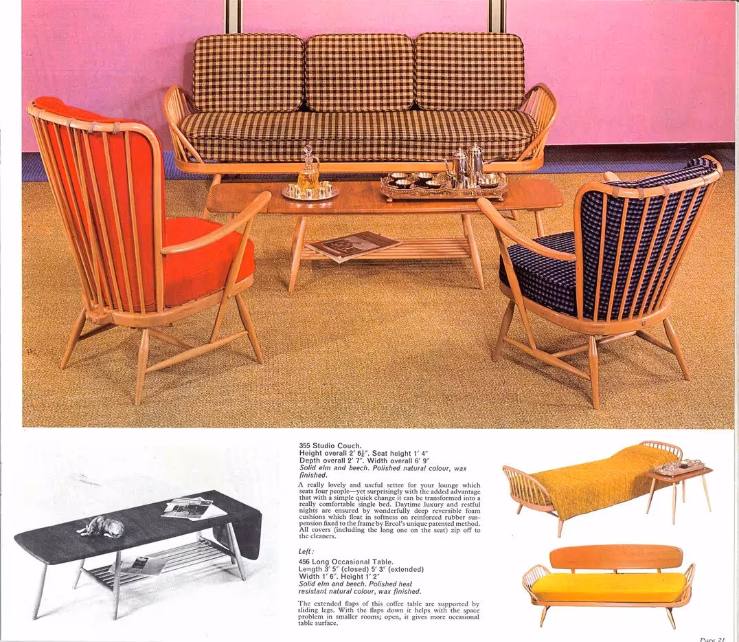Note / Images sourced from vintage Ercol Catalogues. First image from 1965 catalogue. Second image from 1956 catalogue.