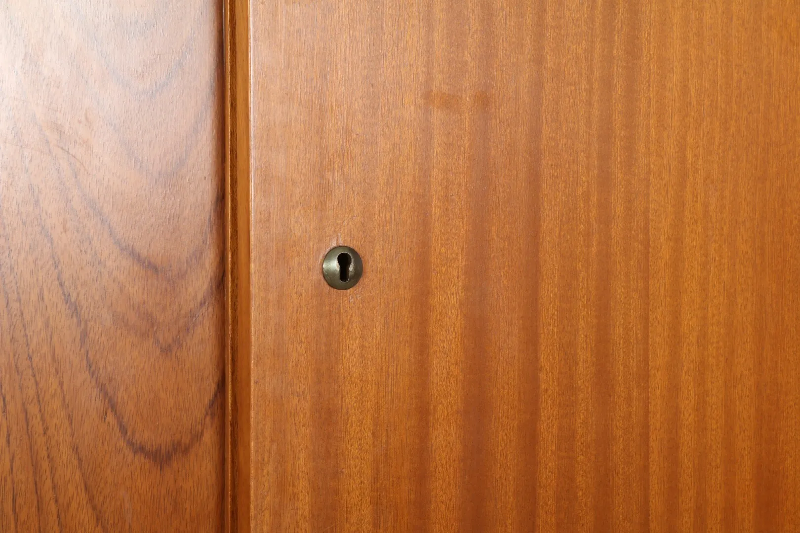 Uniflex has a reputation as one of the best British furniture makers of the mid 20th century. This finely tailored wardrobe leaves no doubt about the sophistication of the Uniflex offering. We love the clean lines and intensity of the timbers - all perfectly showcased in a refined and practical design.