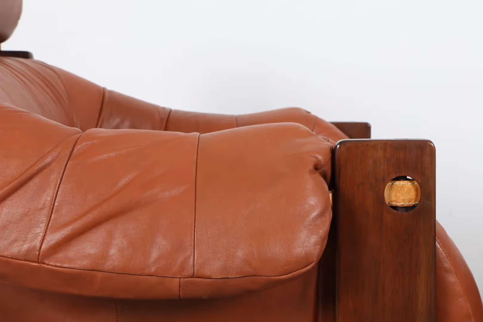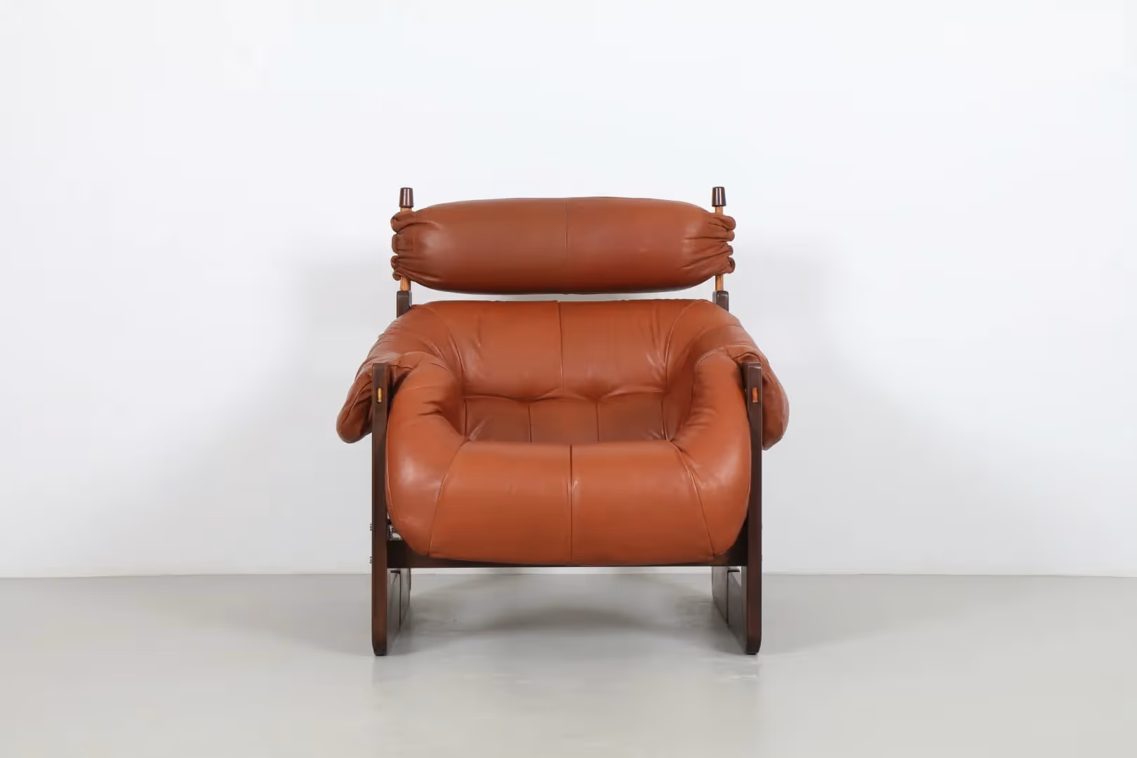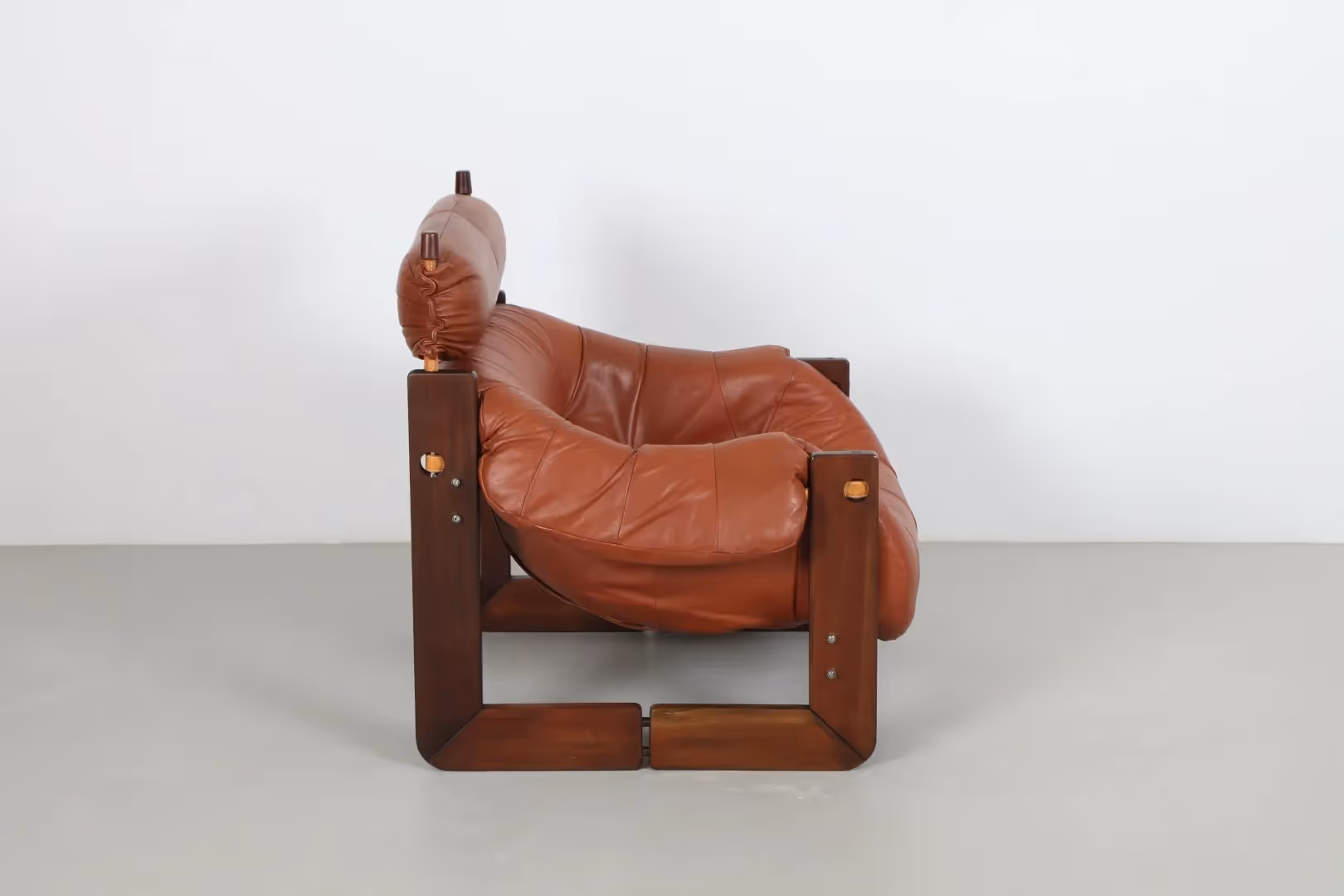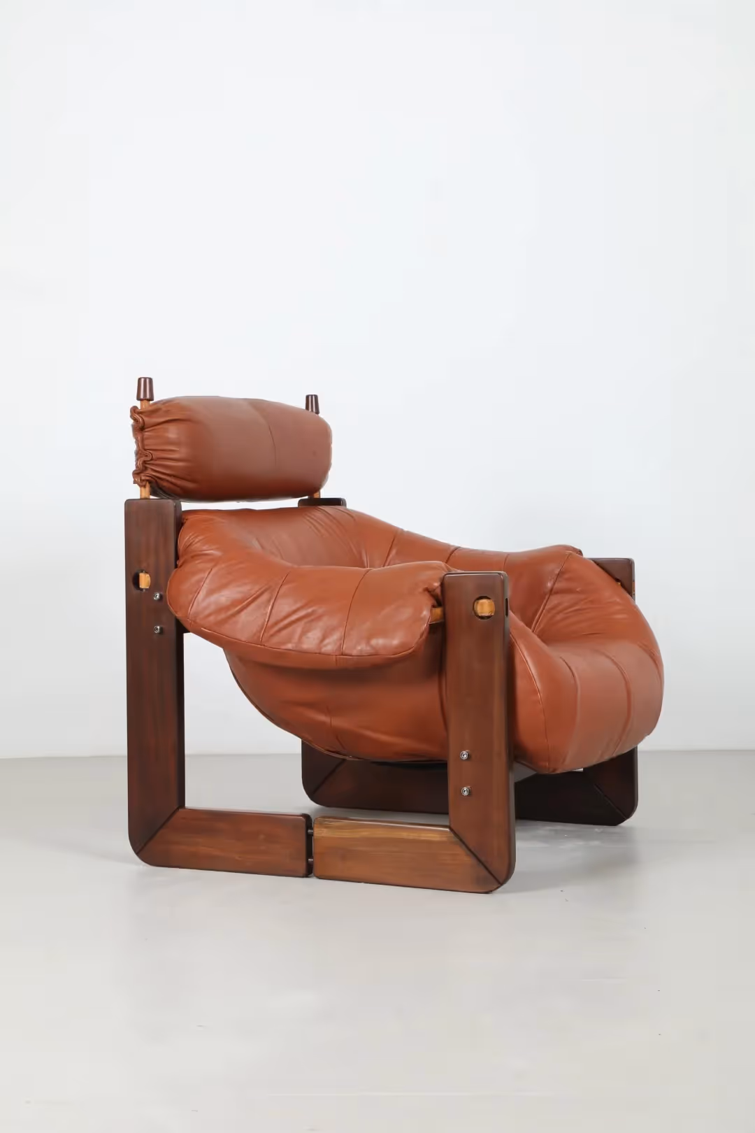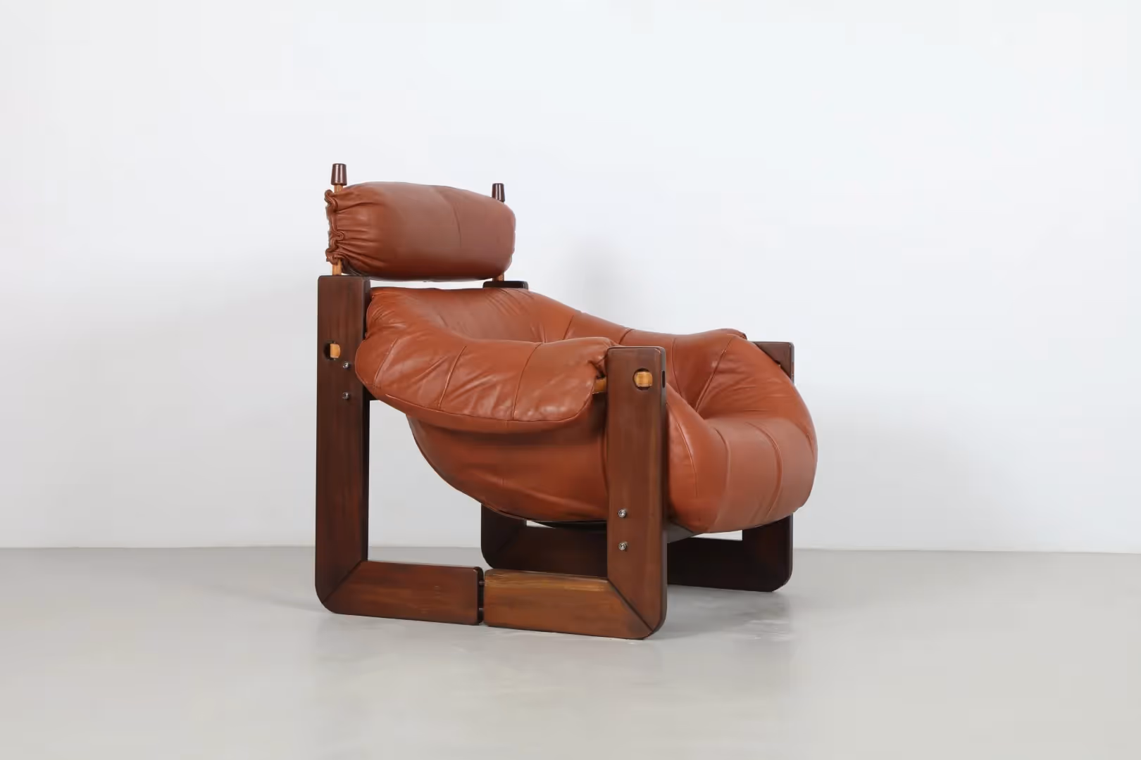 A striking example of South American modernism, the Deluxe Percival Lafer 'MP-97' Armchair by Moveis Lafer showcases bold design and exceptional comfort. Featuring distinctive quilted leather upholstery and a characterful headrest with refined leather detailing, this piece is both inviting and visually dynamic.