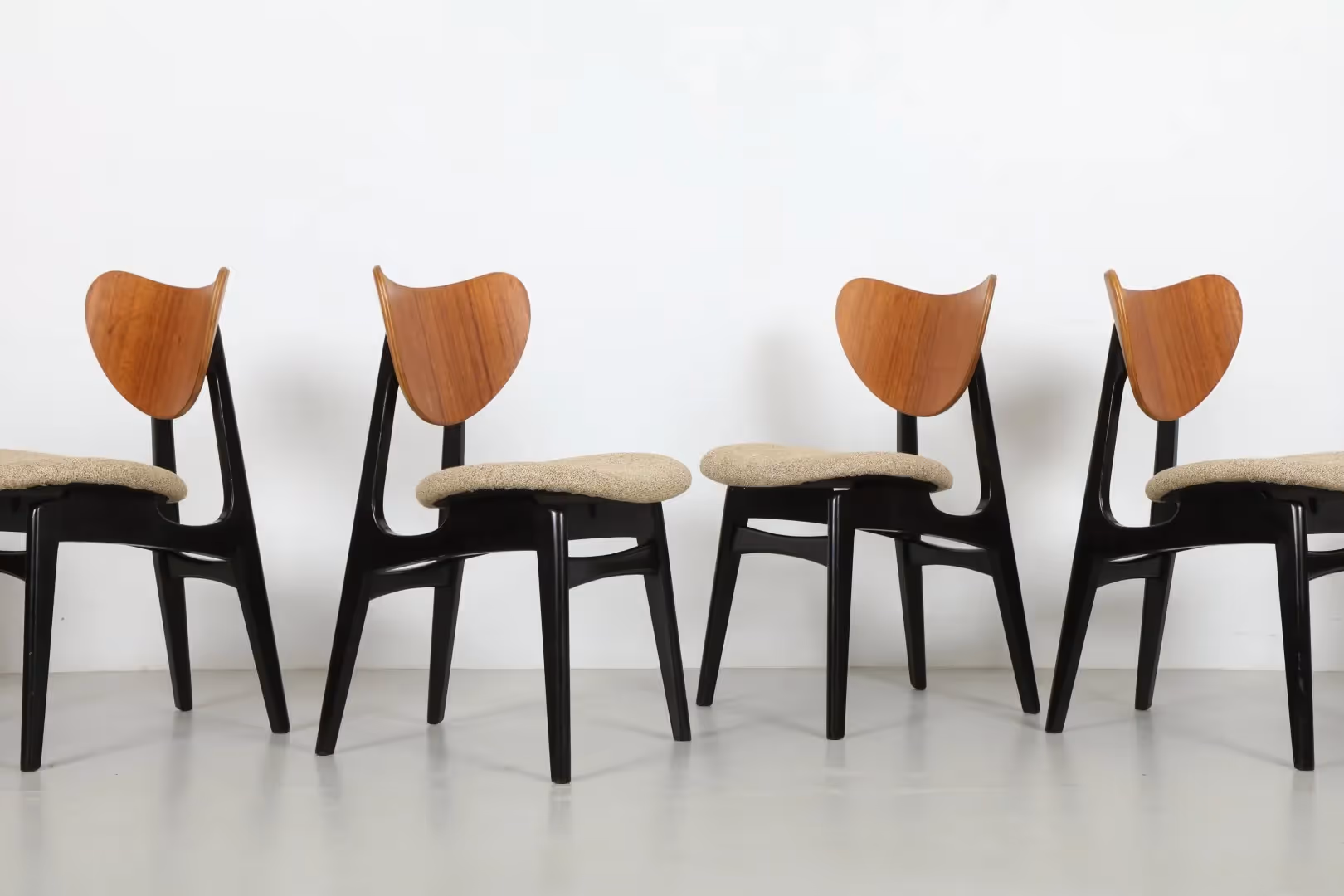 Eight Sleek Victor Wilkins Tola and Black 'Model T634' Dining Chairs by G-Plan