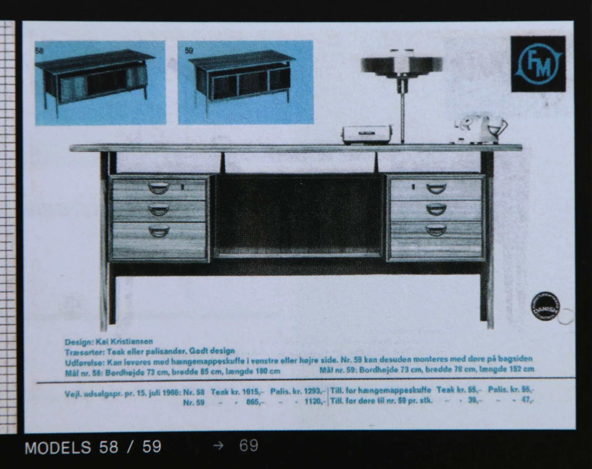 Impressive Kai Kristiansen 'FM58' Executive Desk by Feldballes Mobelfabrik