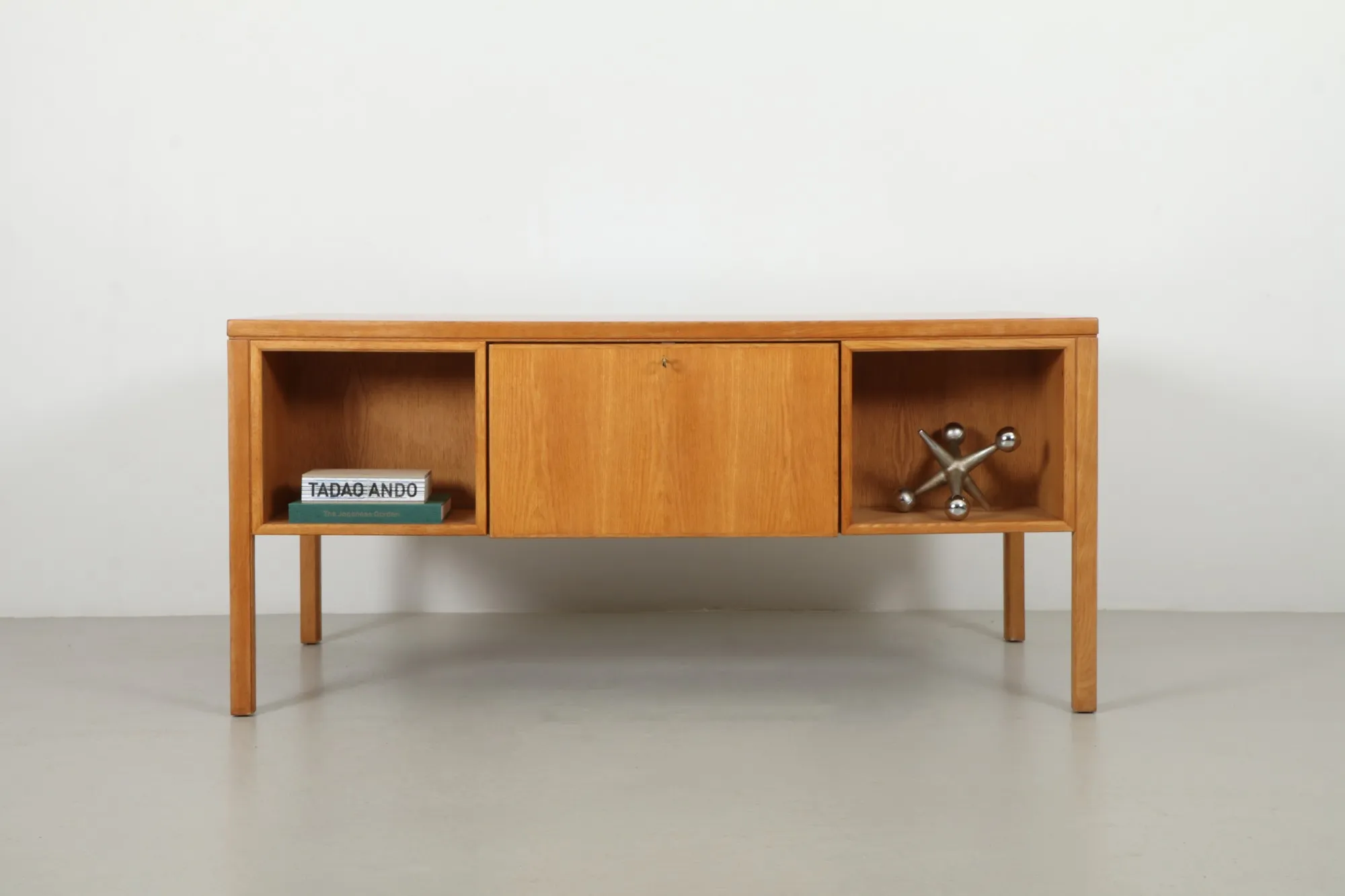 The substantial 'Model 76' desk is an exercise in refined simplicity. It was designed by the talented Gunni Omann for family business Omann Jun and features a highly rational form with a focus on crisp clean lines offset with subtle organic detailing.