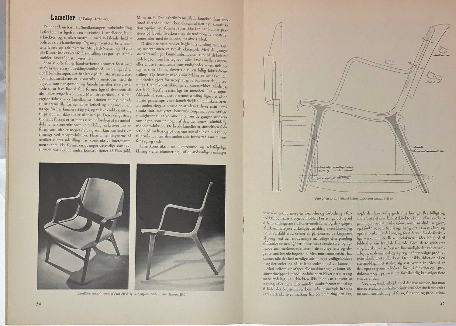 During their careers Hvidt and Mølgaard-Nielsen designed over 250 pieces of furniture for Danish furniture companies such as Fritz Hansen, France & Son and Søborg Møbelfabrik. Today the duo's most iconic design is known as the 'AX' chair. It was exhibited in 1951 as part of the 'Good Design' show at MoMA. The chair was loved for it's refined form, robust construction and ability to easily flat pack.