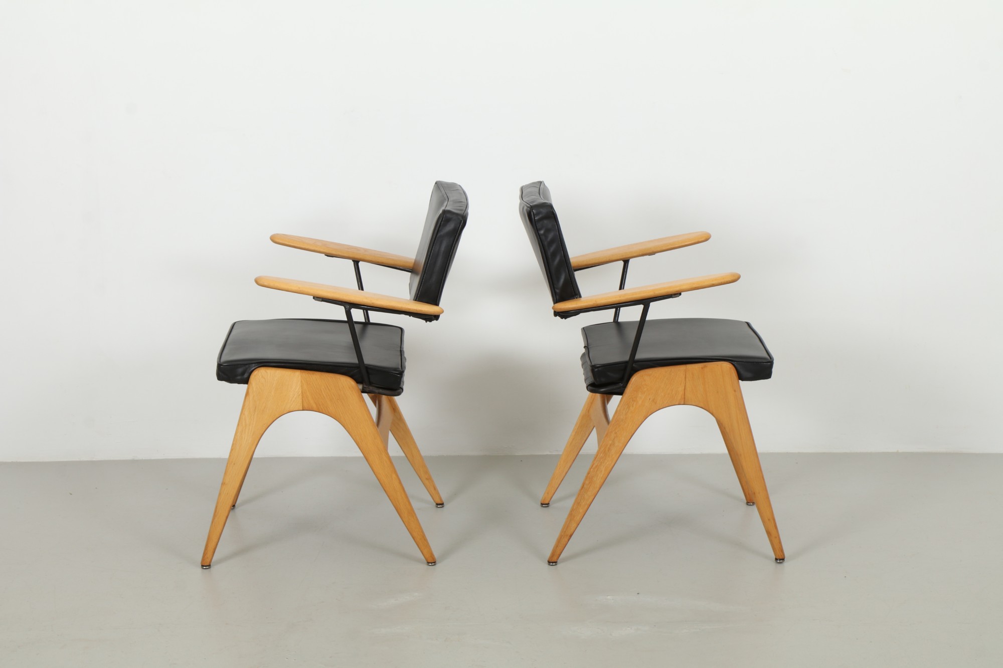 This elegant set of atomic-era occasional chairs by Fred Lowen for Fler were crafted here in New Zealand by Broadhead Bros. The design balance sculptural oak with a slender steel frame for a refined, airy presence.