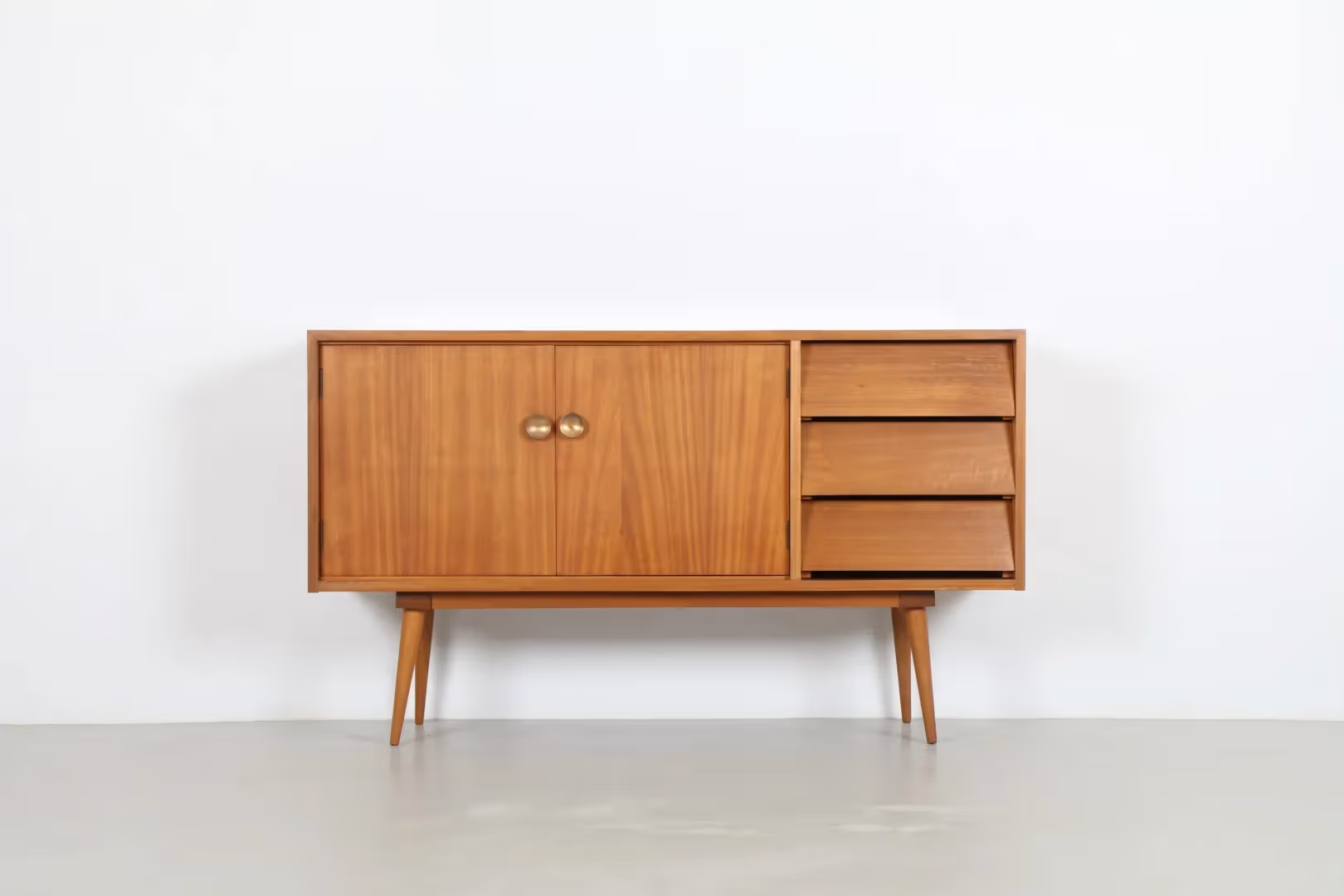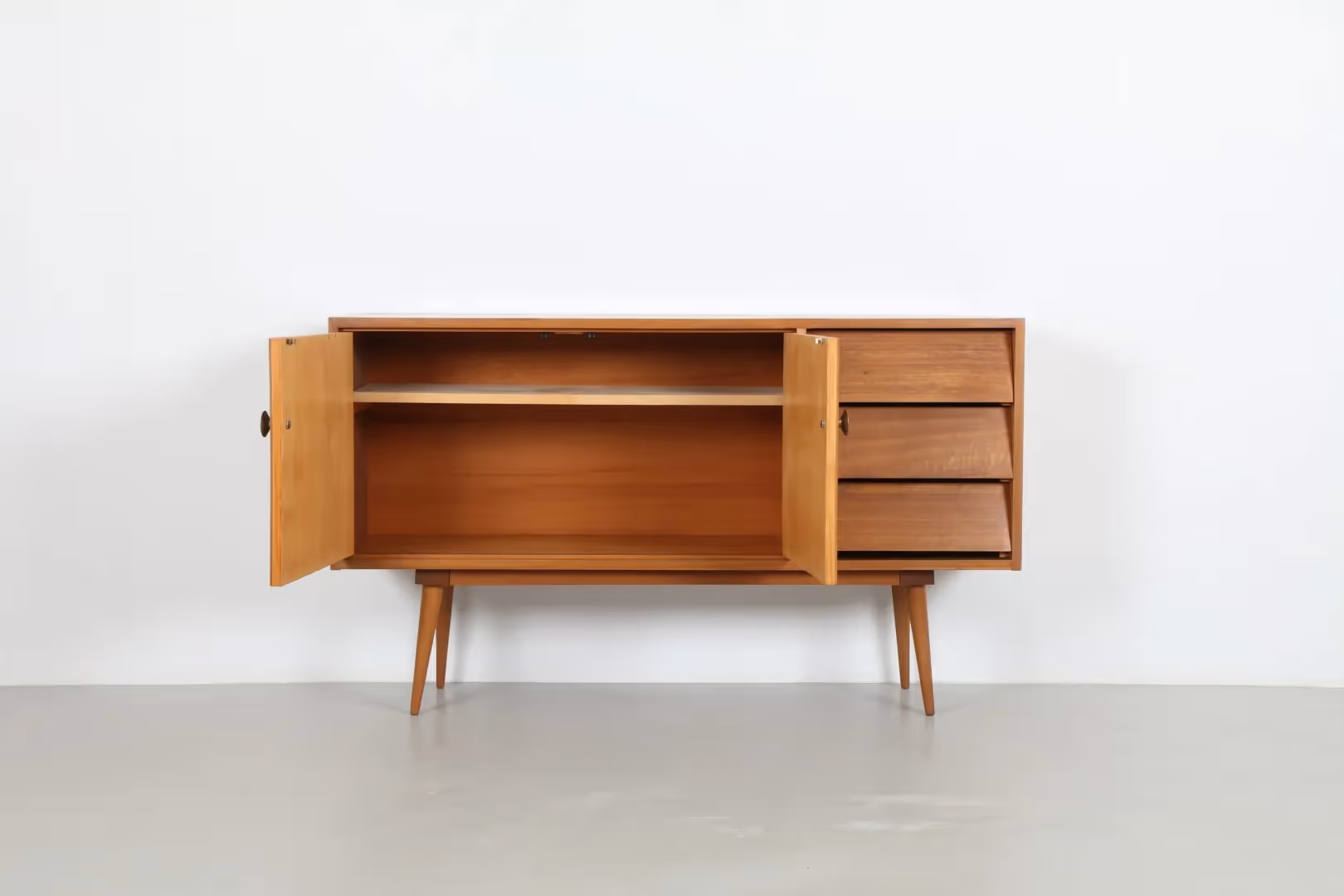 Note: A similar sideboard features in the iconic 1955 Jon Jansen Furniture Exhibit at the Easter Show Trade Pavilion. Image PH-1982-3-SIP-5-737a Sparrow Industrial Pictures