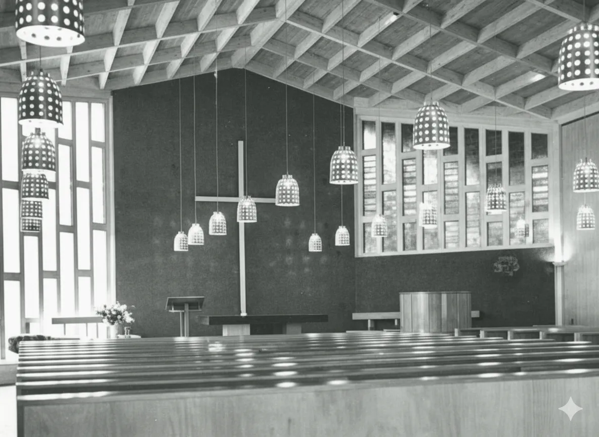 In 1953 the roughly 100 member Presbyterian congregation at St Martins in Christchurch decided to build a new church and chose Plischke as the architect. The original design was to be an impressive modernist building with high walls and a flat roof. Unfortunately, budget restrictions required a significant revision to the plan and a humbler structure emerged.