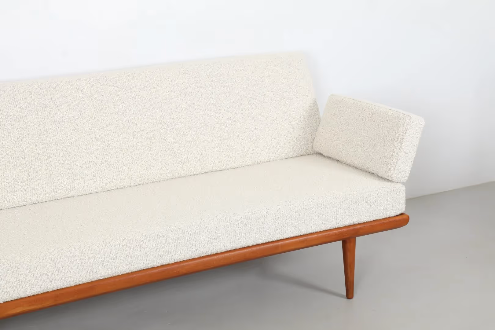 Danish designer Peter Hvidt trained as an architect and cabinetmaker. His furniture designing career has been studded with a trail of iconic statements of design – this sofa, designed with Orla Mølgaard-Nielsen is no exception. The pair collaborated on a range of incredible design pieces and are still highly regarded by collectors.