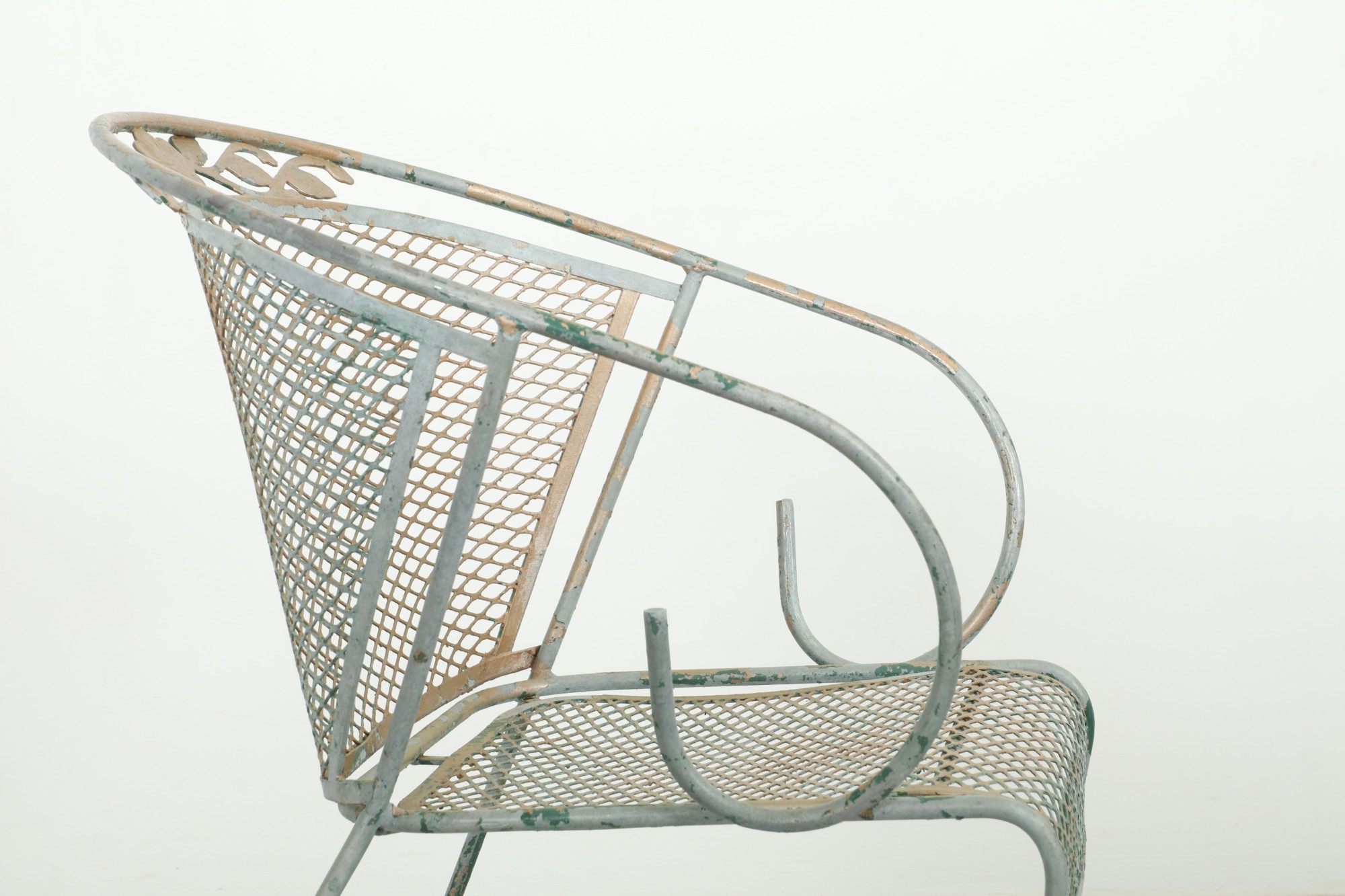 This charming mid-century patio suite pairs a dining table with four matching chairs, offering a refined outdoor setting with a playful, modern spirit. Attributed to Russell Woodard, the design channels classic French garden furniture with elegant proportions and a sculptural presence.