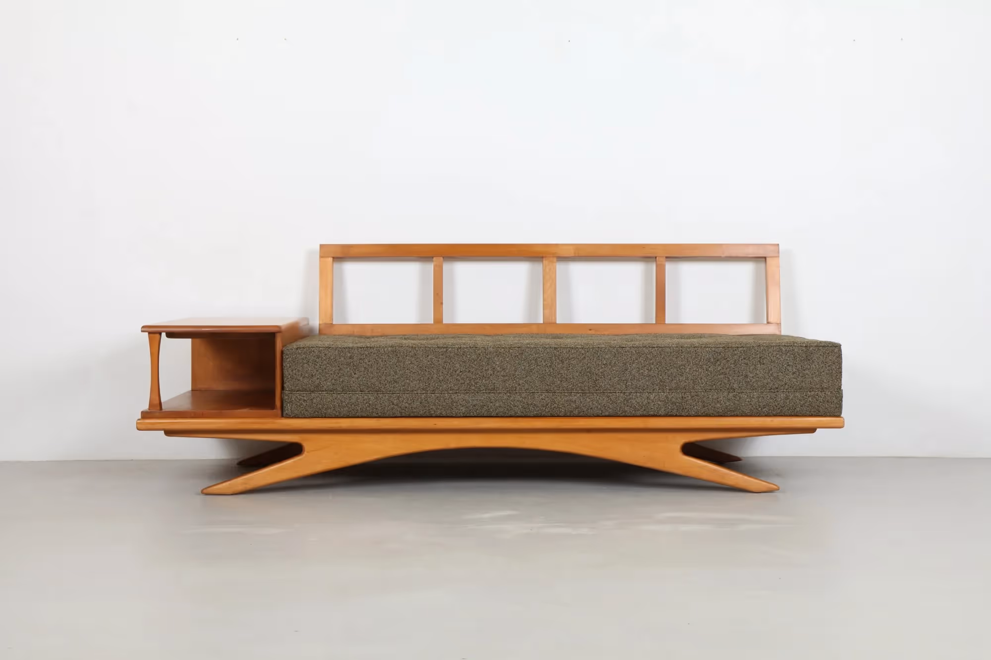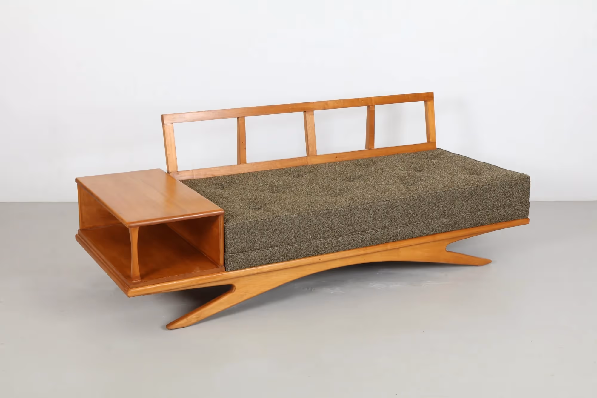 In the mid 1950s Ces Renwick of Airest looked to America for inspiration on a contemporary range of furniture that would push boundaries and inspire a local Kiwi audience. The work of high end New York designer Vladamir Kagan seems to have been the main influence behind many of the premium Airest designs of this era.