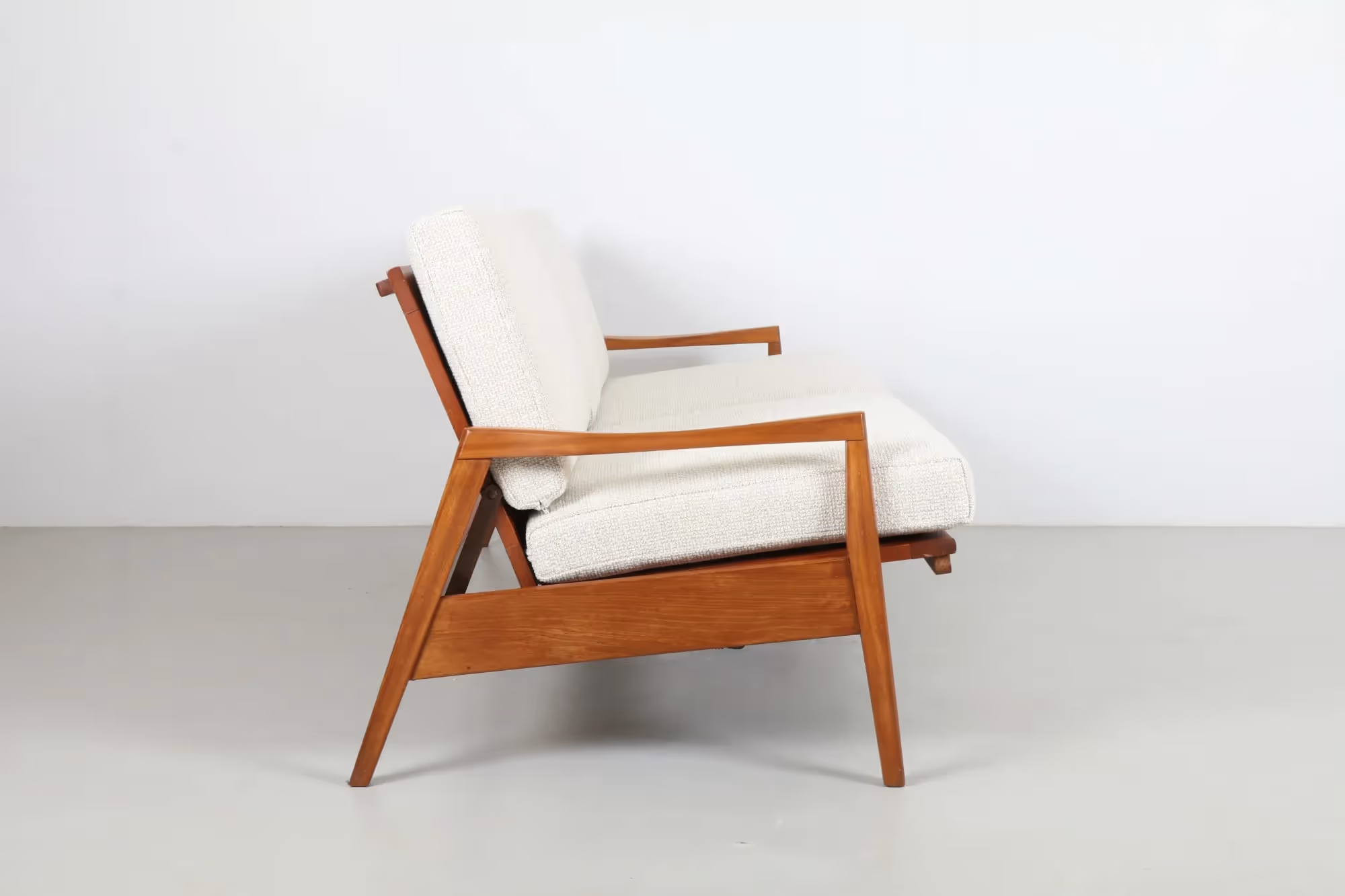 Paired with a contemporary textile, this piece is perfect for modern interiors. Versatile and stylish, it's an ideal choice for those seeking premium mid-century craftsmanship with a contemporary aesthetic.