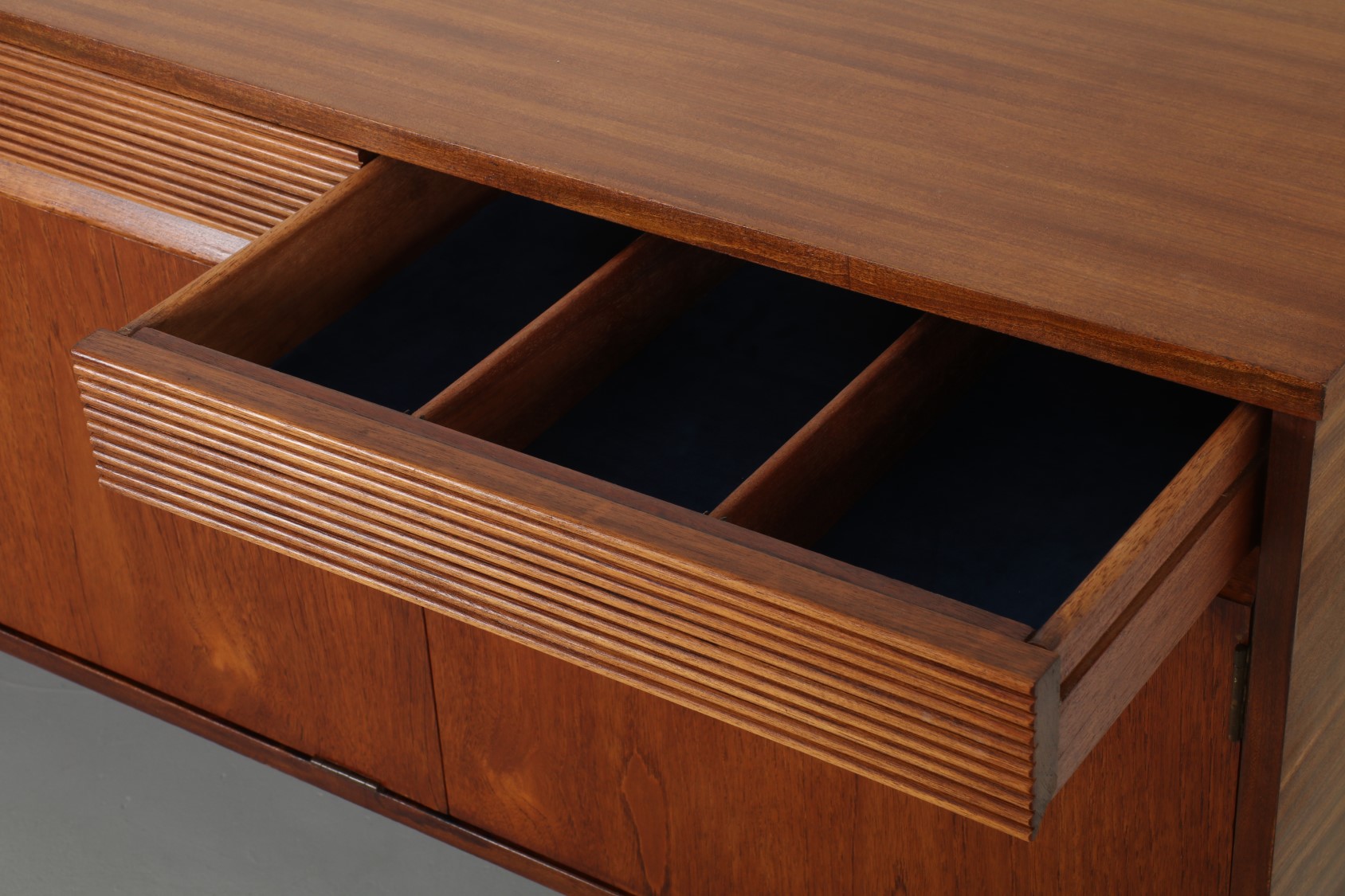 This coveted sideboard features generous storage spaces and a set of functional of drawers. It's one of the most elegant pieces we've had and will turn heads in any contemporary interior.