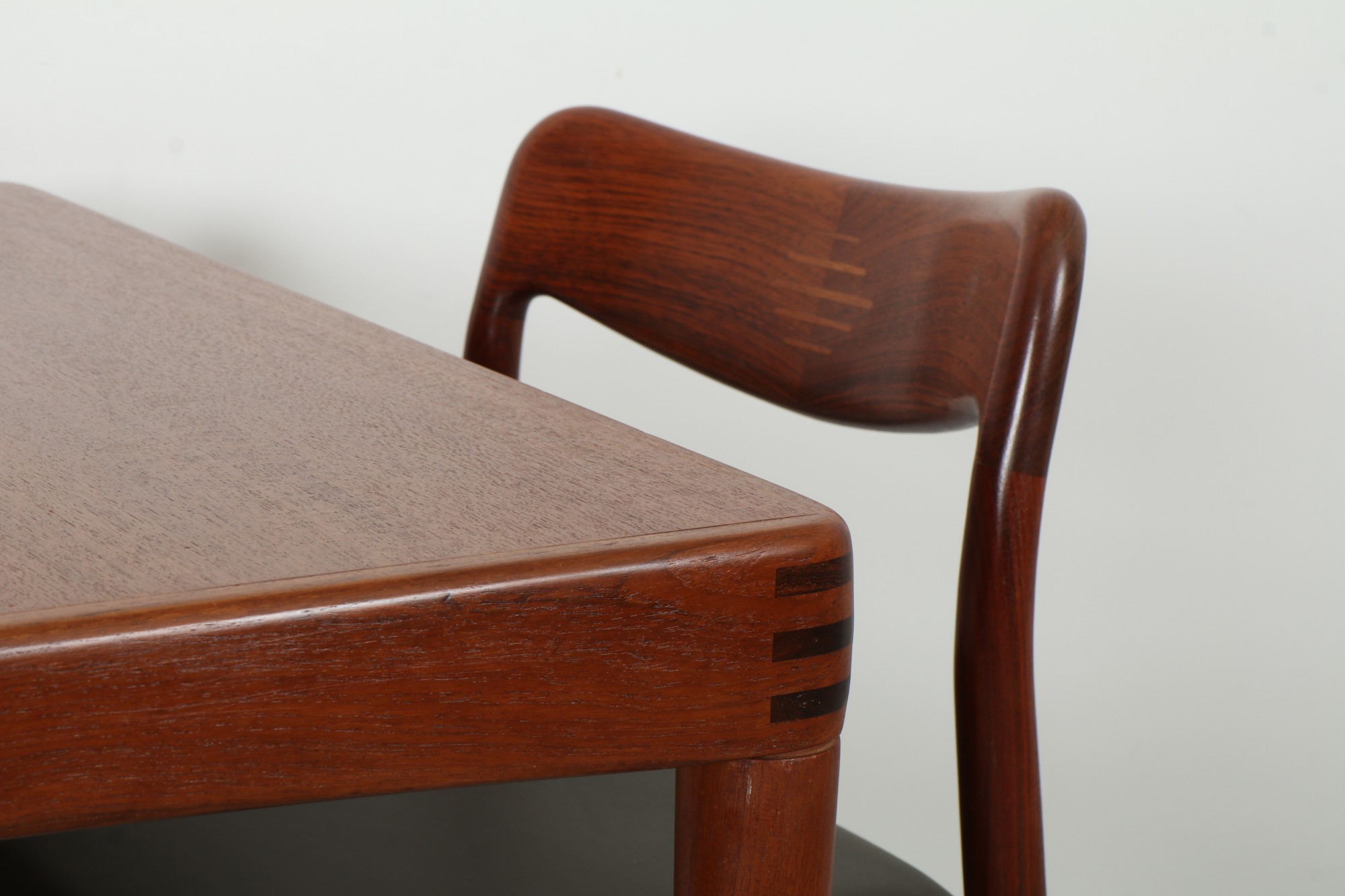 Proportions are generous yet elegant, offering a warm, inviting stage for daily dining or special occasions. Slim legs placed at the table corners create a comfortable inner seating space. This is a premium Danish dining table that will elevate any interior with timeless sophistication and understated luxury.