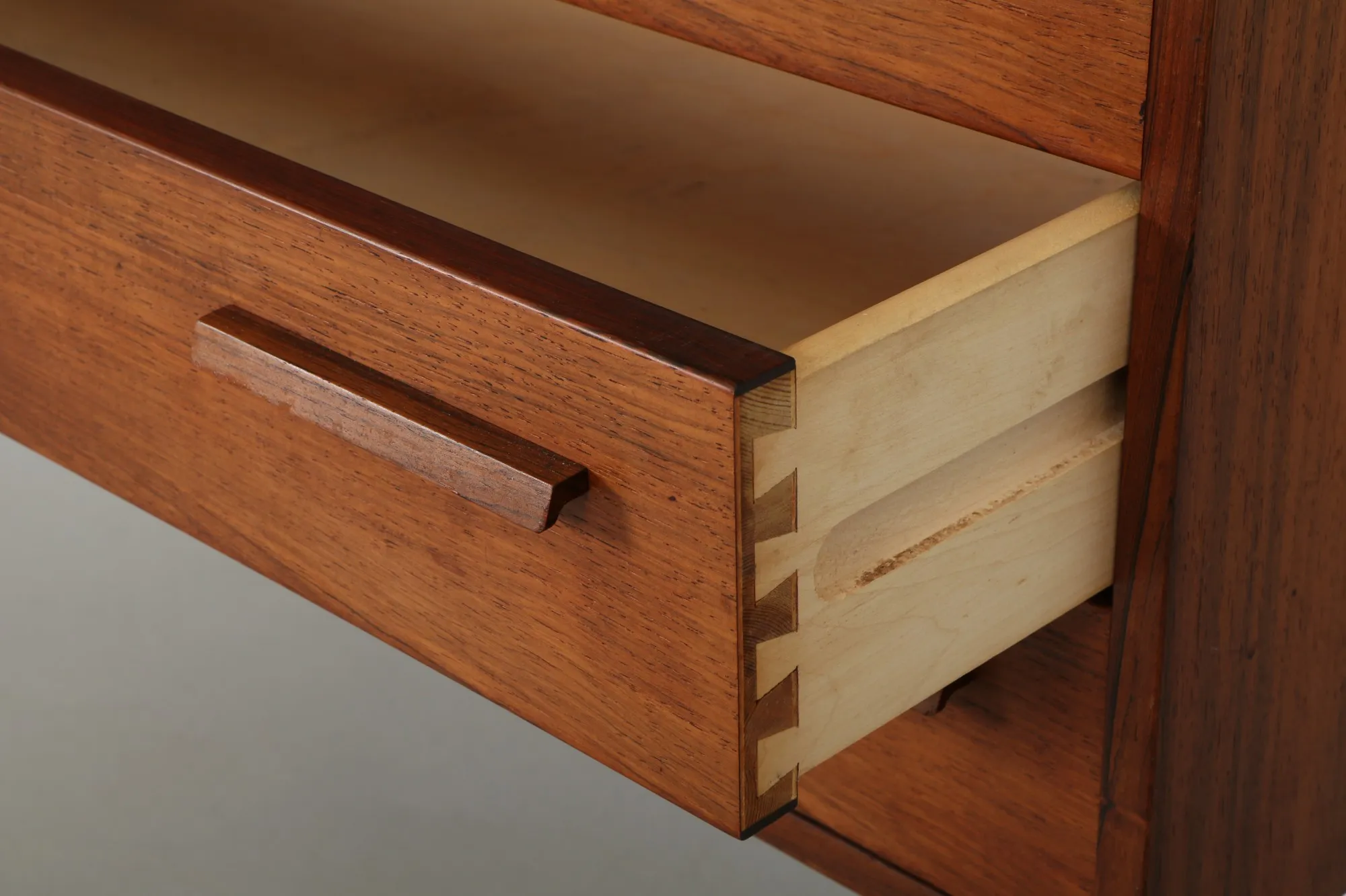 Kristiansen was born in 1929 and trained at the Royal Danish Academy of Fine Arts. His mentor was the famed father of modern Danish furniture design Kaare Klint. Kristiansen excelled as a cabinetmaker and in 1955 set up his own design workshop. His talent was quickly recognised by some of Denmark's finest cabinet makers and the result is some of the most stunning furniture produced during the mid century era.