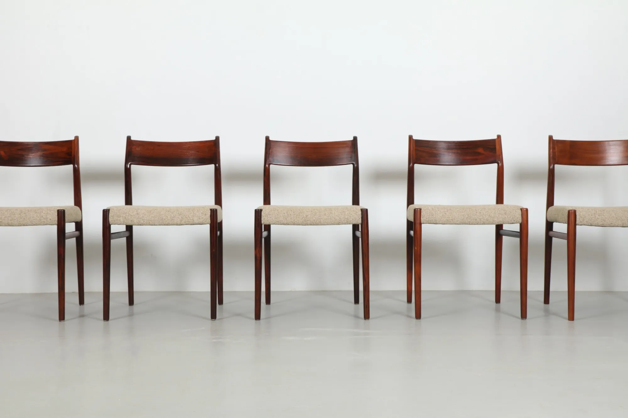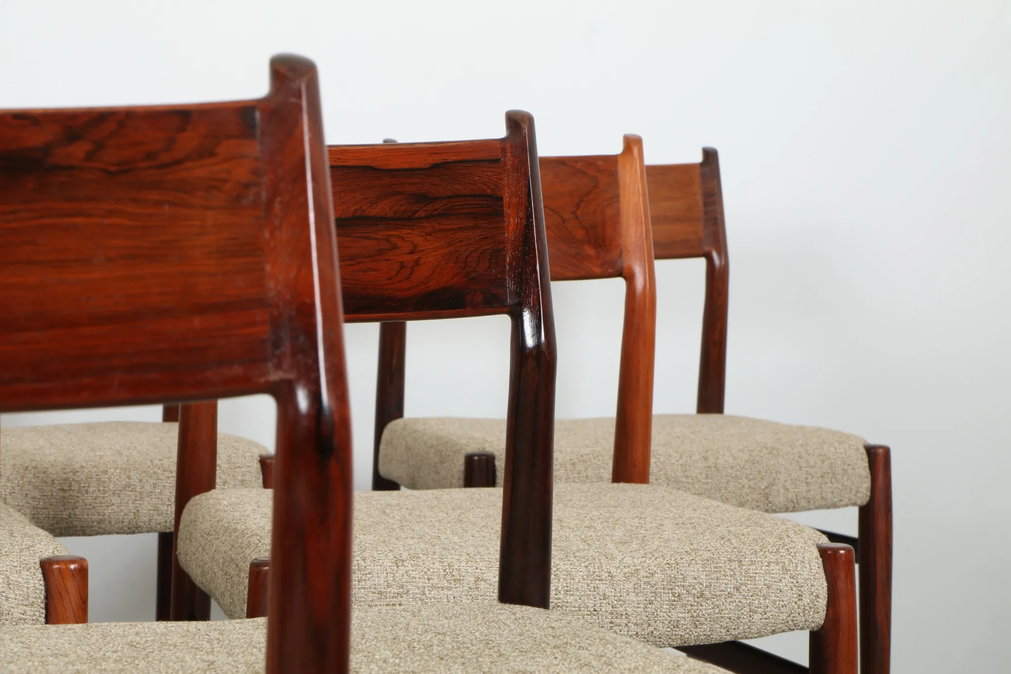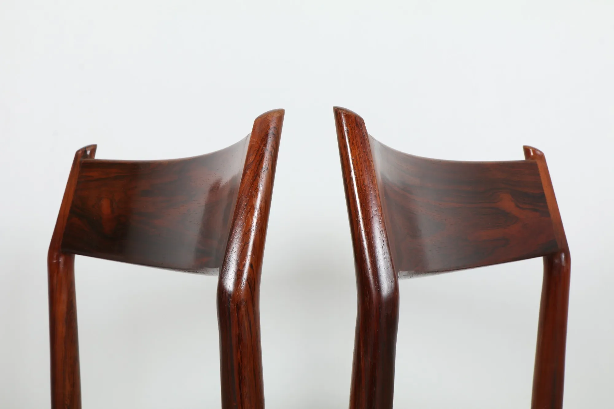 Designed by Danish architect Arne Vodder for Sibast, the 'Model 418' is a masterclass in restrained elegance. Each chair showcases a graceful profile and beautifully resolved detailing, crafted in deluxe rosewood with premium construction for enduring quality.